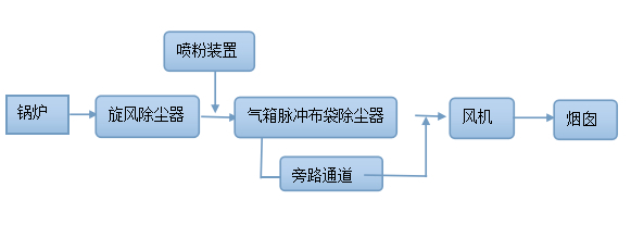 針對(duì)上述鍋爐特點(diǎn),提出如下除塵工藝見(jiàn)圖: